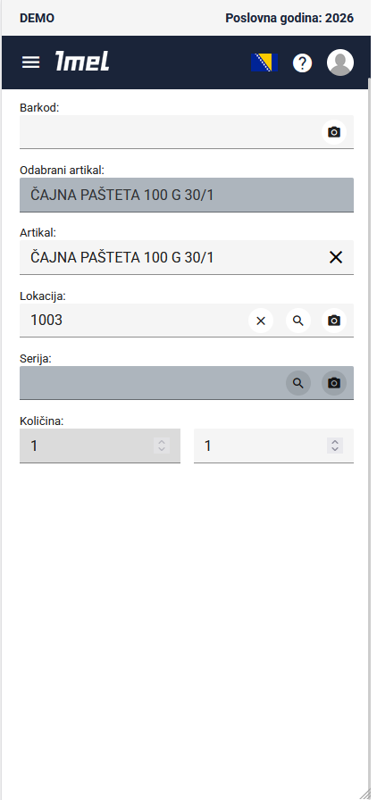 Za situacije kada roba dolazi bez prethodne narudžbe, aplikacija omogućava i slobodan unos ulaza ili izlaza robe.